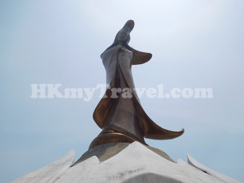 The Kun Lam Ecumenical Centre, also known locally as the Guanyin Statue, is a 20-meter-tall statue of Guanyin standing on a 7-meter-high lotus base. Located on an artificial island, the statue was inaugurated in 1999. The lotus base houses a souvenir shop, exhibition hall, and a small library.