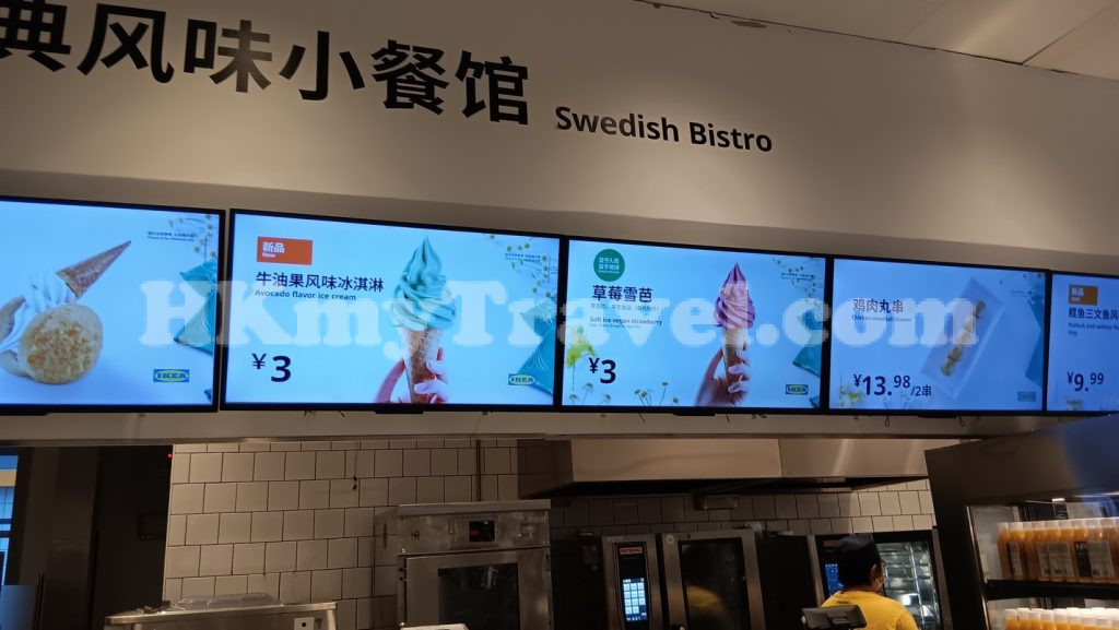 到達深圳宜家家居後,我們首先想去的就是餐廳。根據我們在香港宜家家居的經驗,那裡有非常美味和特別的菜餚,我們喜歡在宜家家居餐廳吃飯。令人驚訝的是,餐廳很大,要找到座位並不難。他們有各種各樣的食物可供選擇,例如肉丸、蛋糕、新鮮鮭魚、牛排、沙拉,我們發現的其他特色食物還有鮭魚派、羊肉串。不過大部分食物都有兩種價格,一種是會員價格,比較便宜,成為會員是免費的。和香港的IKEA一樣,購買一杯飲料後可以免費續杯。我們找到了一個好地方並在那裡享用了一頓美餐。
