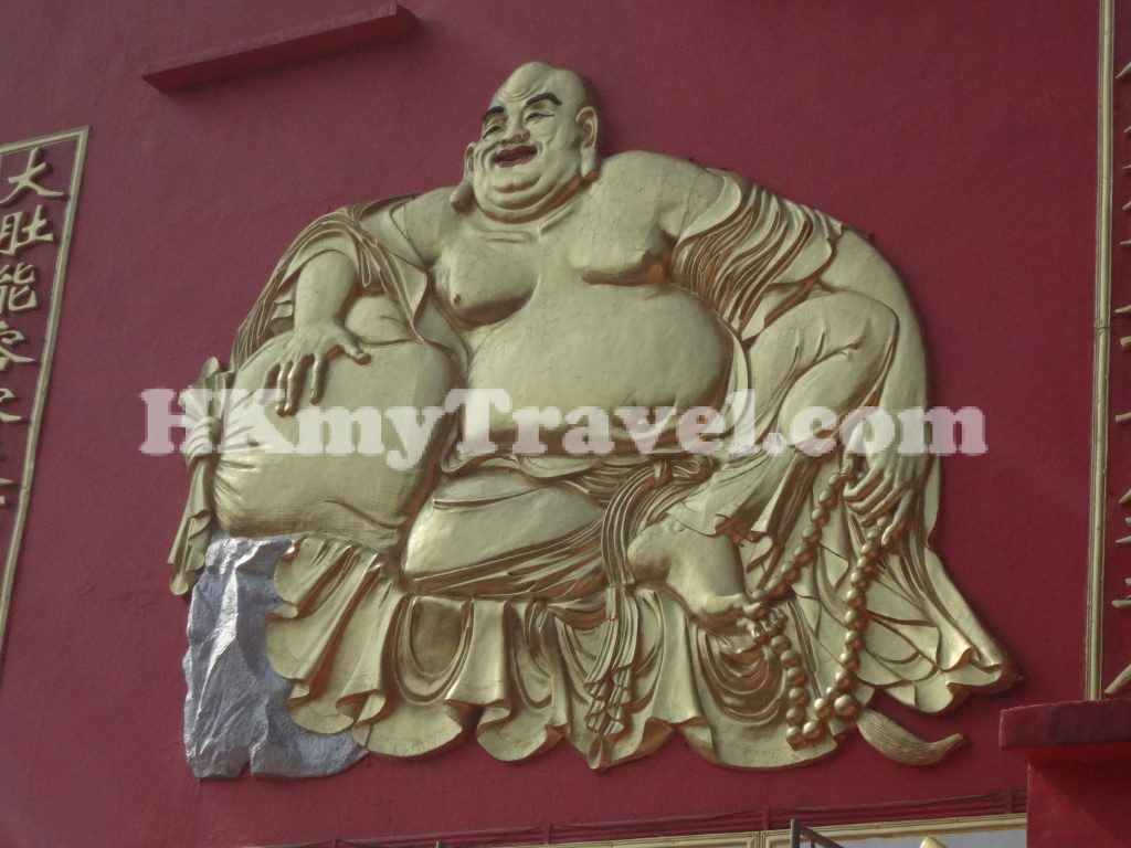 抵達寺廟後,首先映入眼簾的是位於大雄寶殿側牆的彌勒佛。在中國傳統中,彌勒佛以大肚形象示人,象徵包容與喜悅。佛像旁有兩句詩:「大肚能容,容天下難容之事;開口常笑,笑世間可笑之人」,提醒我們要寬容與智慧。